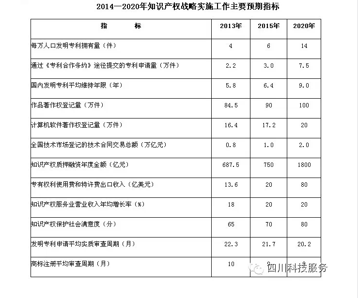 ——知識產(chǎn)權(quán)創(chuàng)造水平顯著提高。知識產(chǎn)權(quán)擁有量進(jìn)一步提高,結(jié)構(gòu)明顯優(yōu)化,核心專利、知名品牌、版權(quán)精品和優(yōu)良植物新品種大幅增加。形成一批擁有國外專利布局和全球知名品牌的知識產(chǎn)權(quán)優(yōu)勢企業(yè)。